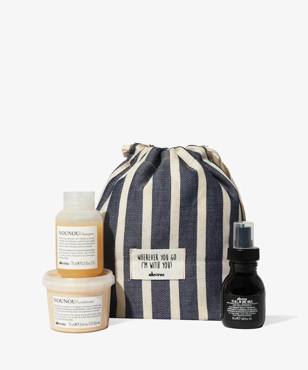 Healthy hair = happy hair so haul the Davines Travel Bundle. Inside youβll find two of the NOUNOU Shampoo, a nourishing and cleansing shampoo, and the OI All In One Milk, a multi-function leave-in hair spray. Complete with the Wanderlust Pochette, a drawstring back to store your haircare heroes in, this bundle belongs in your next haul.
