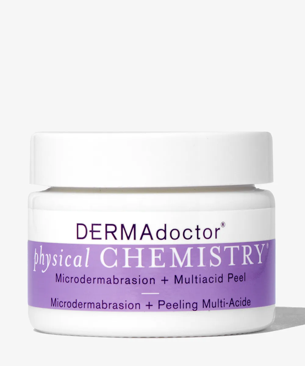 For a clinical at-home chemical peel and microdermabrasion session in one, reach for the DERMAdoctor Physical Chemistry Facial Microdermabrasion + Multiacid Chemical Peel. This multifunctional treatment uses both chemical and physical exfoliation blended in a calming, hydrating base to dramatically reveal smoother, softer, brighter, healthier appearing skin.