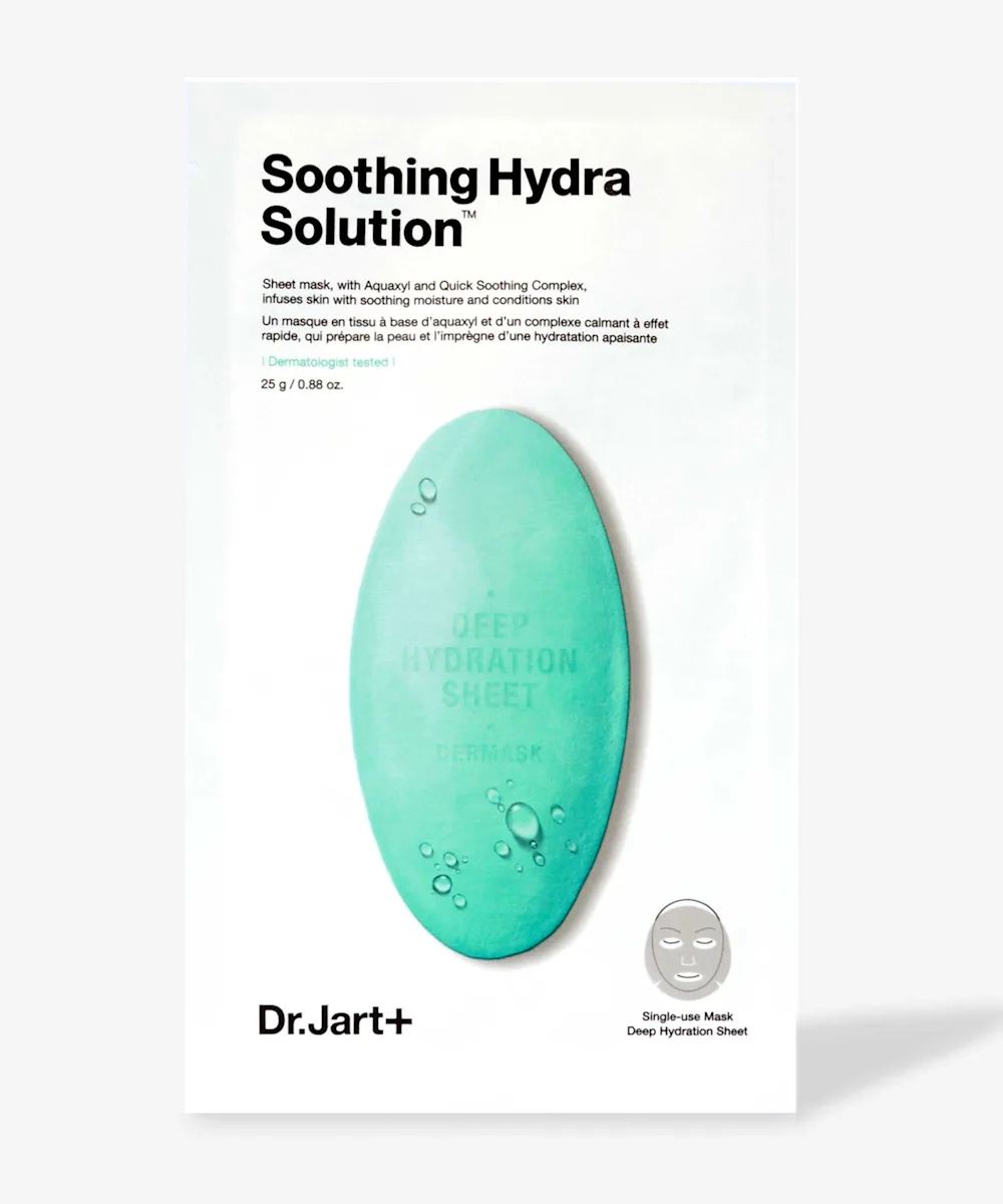 - Dermask Soothing Hydra Solution Mask- A cooling and anti-inflammatory sheet mask for stressed out skin,
