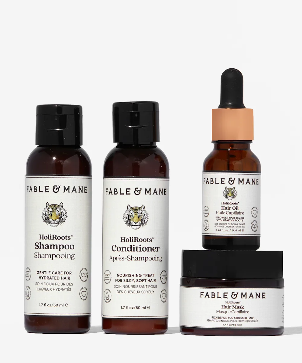 Hydrate your hair back to life with the Fable & Mane HoliRoots Good Karma Hair Set. This four-piece haircare minis set includes a hair oil, shampoo, conditioner, and hair mask, all of which are formulated to strengthen and hydrate your mane for stronger, fuller-looking hair. With a reusable pouch that allows you to take them wherever you go, so no matter where you are your hair will always get the care it needs. Good hair days pending…