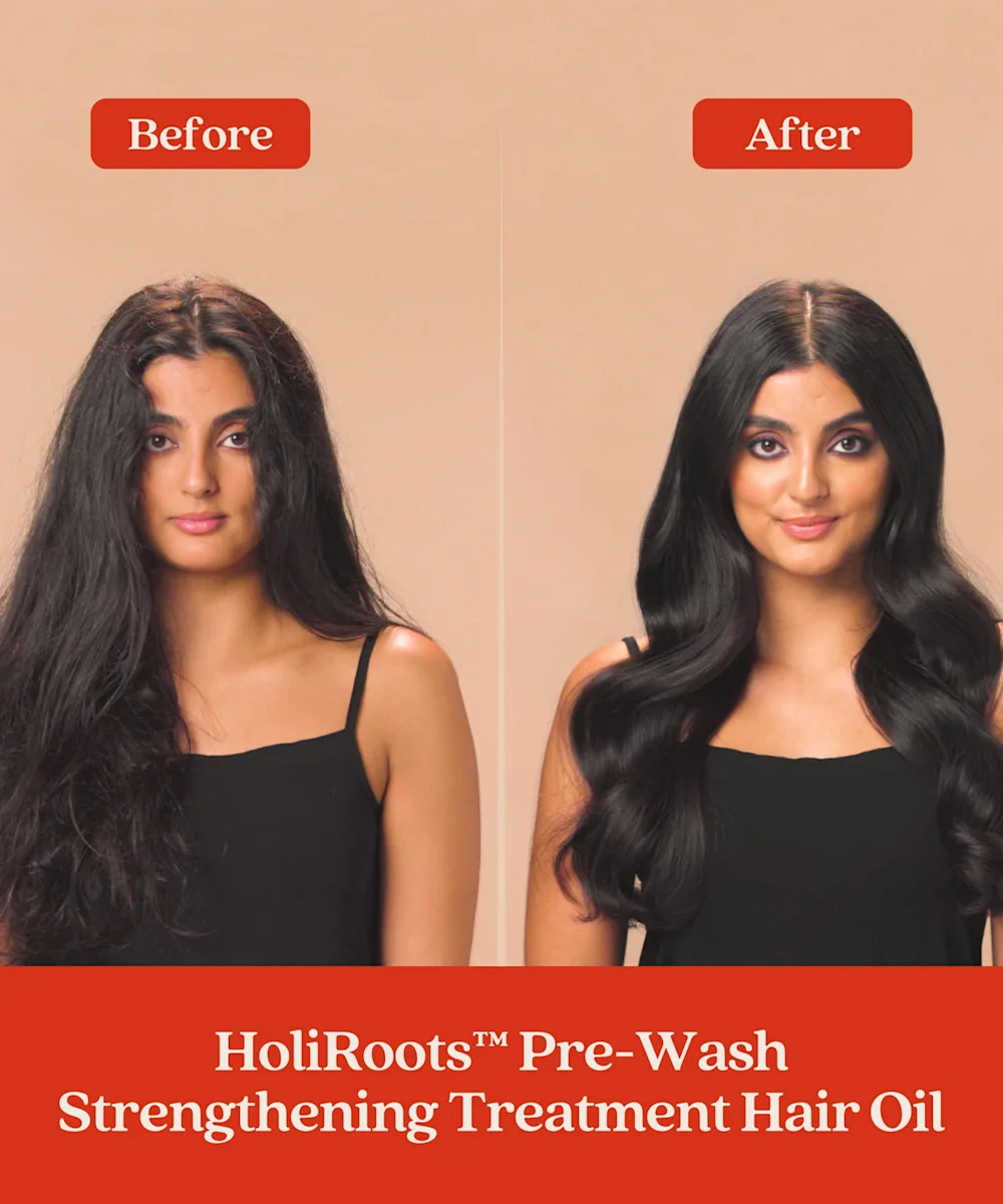 - HoliRoots Hair Oil 14ml – A hair oil enriched with a ashwagandha and dashmool formula that helps thicken fine hair, strengthen the scalp, and promote healthy scalp circulation to encourage hair growth and leaving your hair healthier than ever before.
