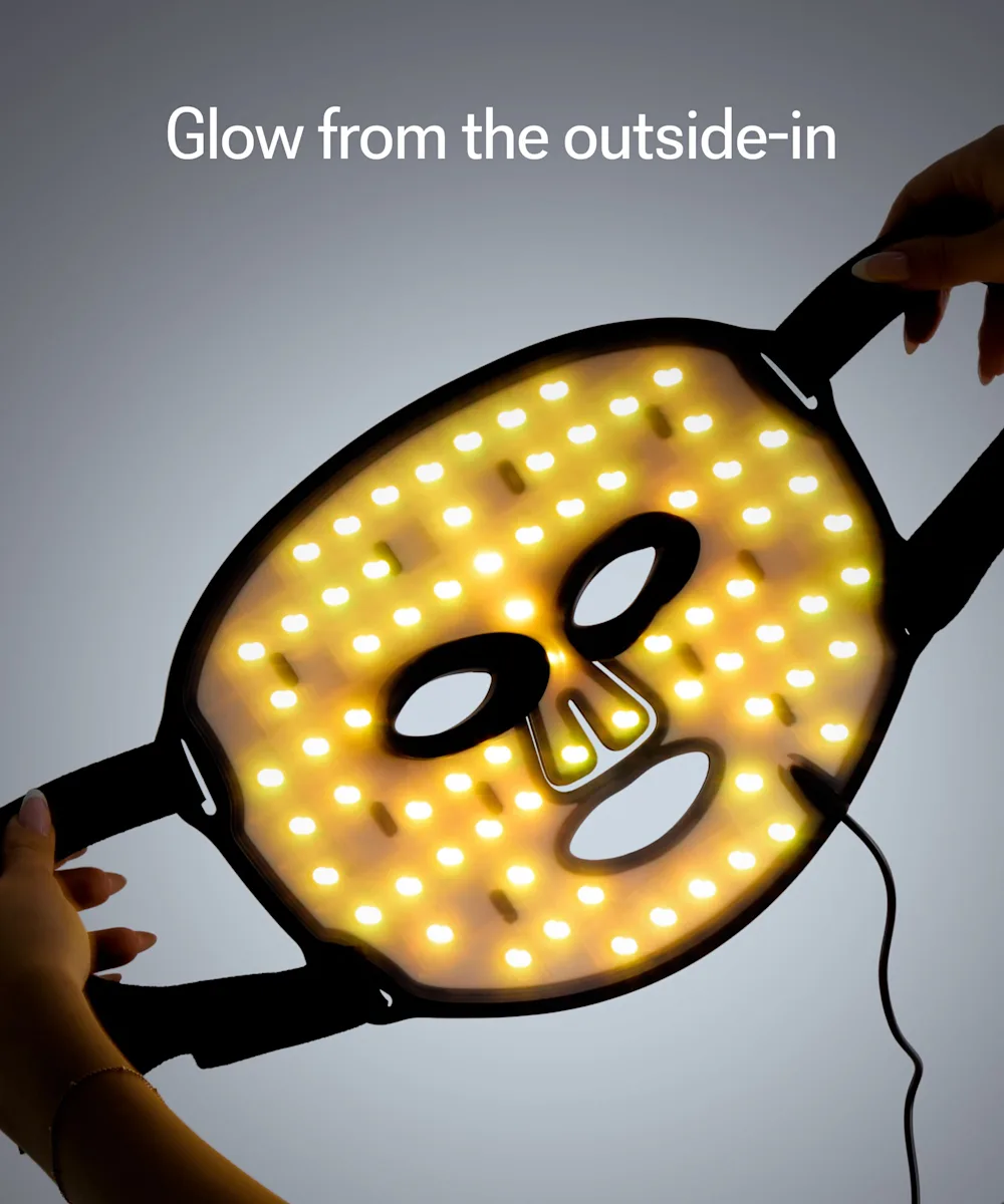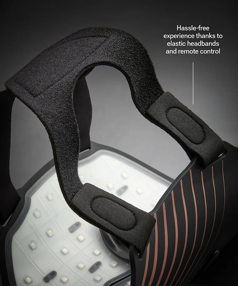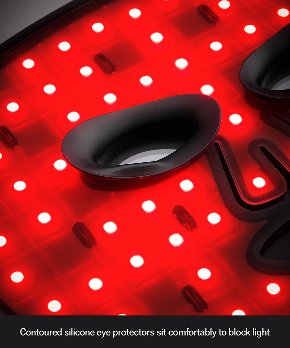 - Step 4: Once the mask is secure, press and hold the power button for 1.5 seconds to turn on the mask. It will default to red light mode.