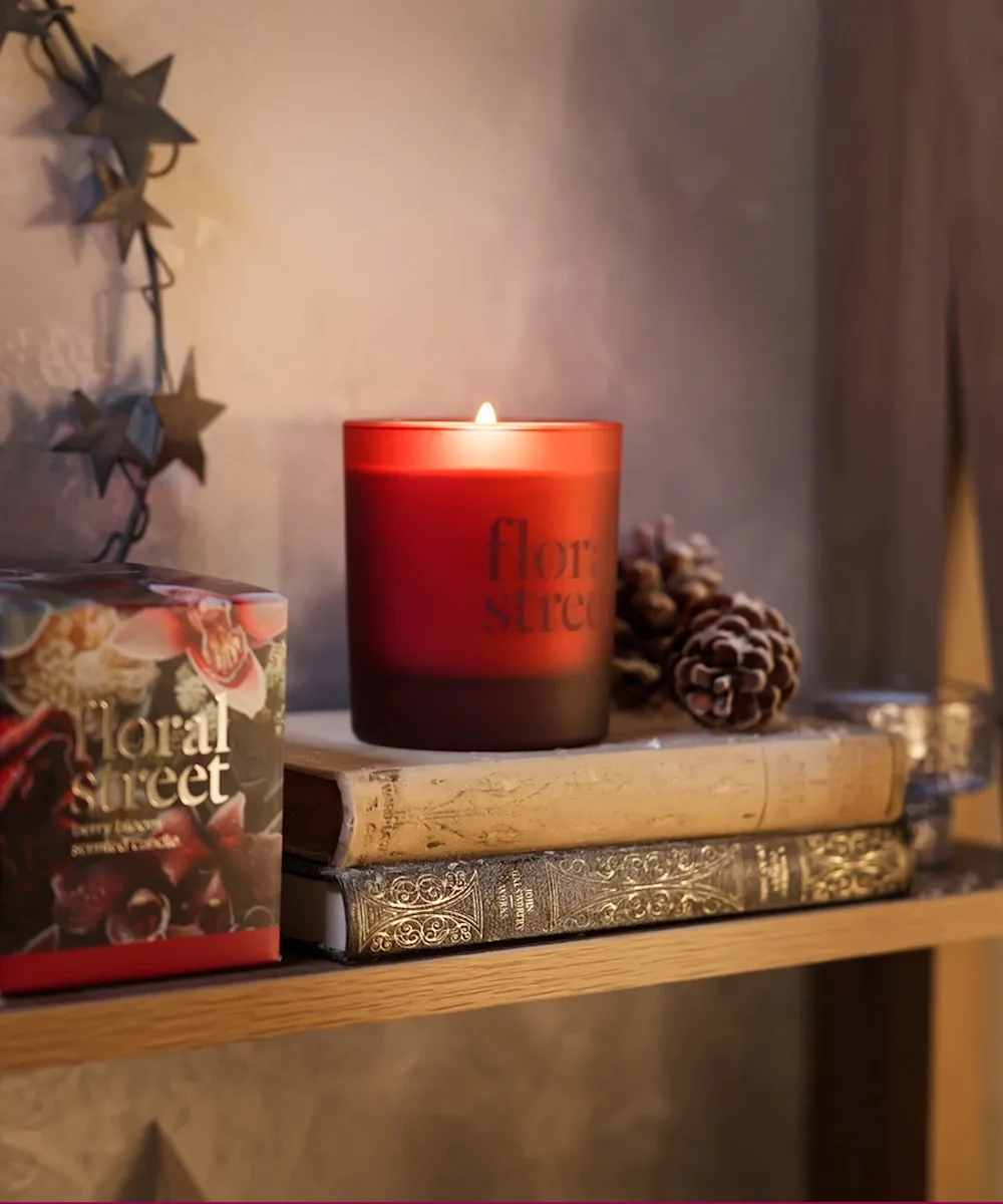 Fill your home with the scent of cosy season with the Floral Street Berry Bloom Candle. It's notes include ripe red apples, muddled berries and enticing vanilla bean, along with sweet pear, jasmine blossom, crisp Hinoki woods and a touch of candy floss for a soothing, cocooning effect. A beautifully crafted candle with a 40-hour burn time, it's been designed to leave you with that warm, festive feeling and give the perfect winter night glow. Light it up and let the cosy, inviting fragrance fill your space.