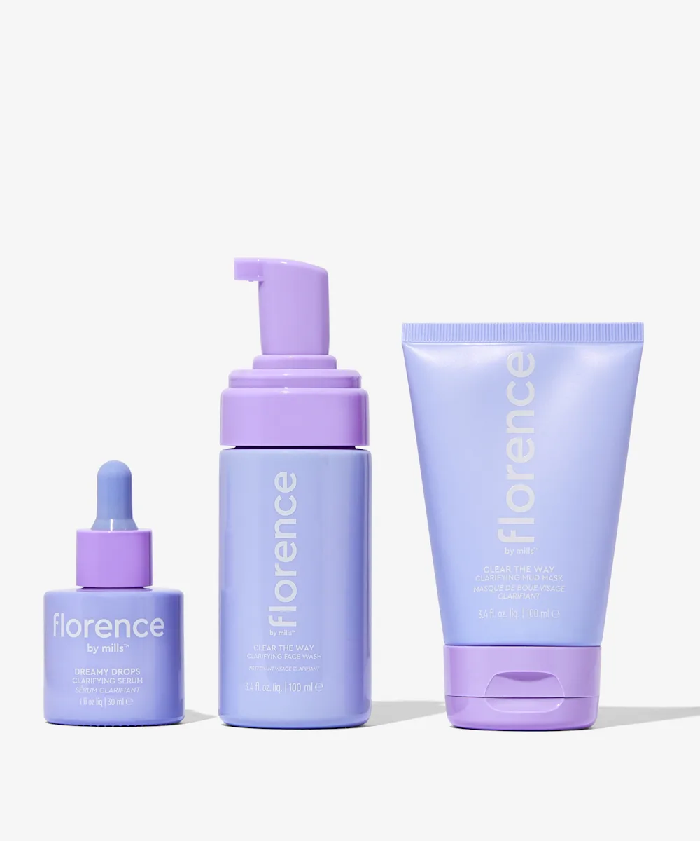 Clear the way to smoother and softer skin with the florence by mills Clear The Way Clarifying Bundle. Inside you’ll find everything you need to achieve clearer and noticeably smoother skin including the Clear The Way Clarifying Mud Mask, a clarifying mud mask, the Clear The Way Face Wash, a clarifying face wash, and the Dreamy Drop Clarifying Serum, a clarifying serum. Haul it and notice the difference.