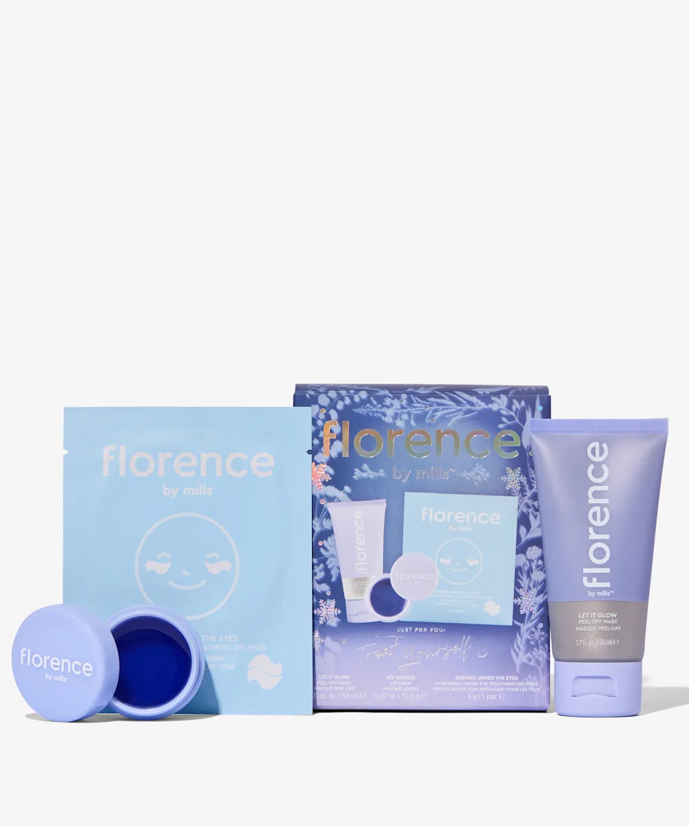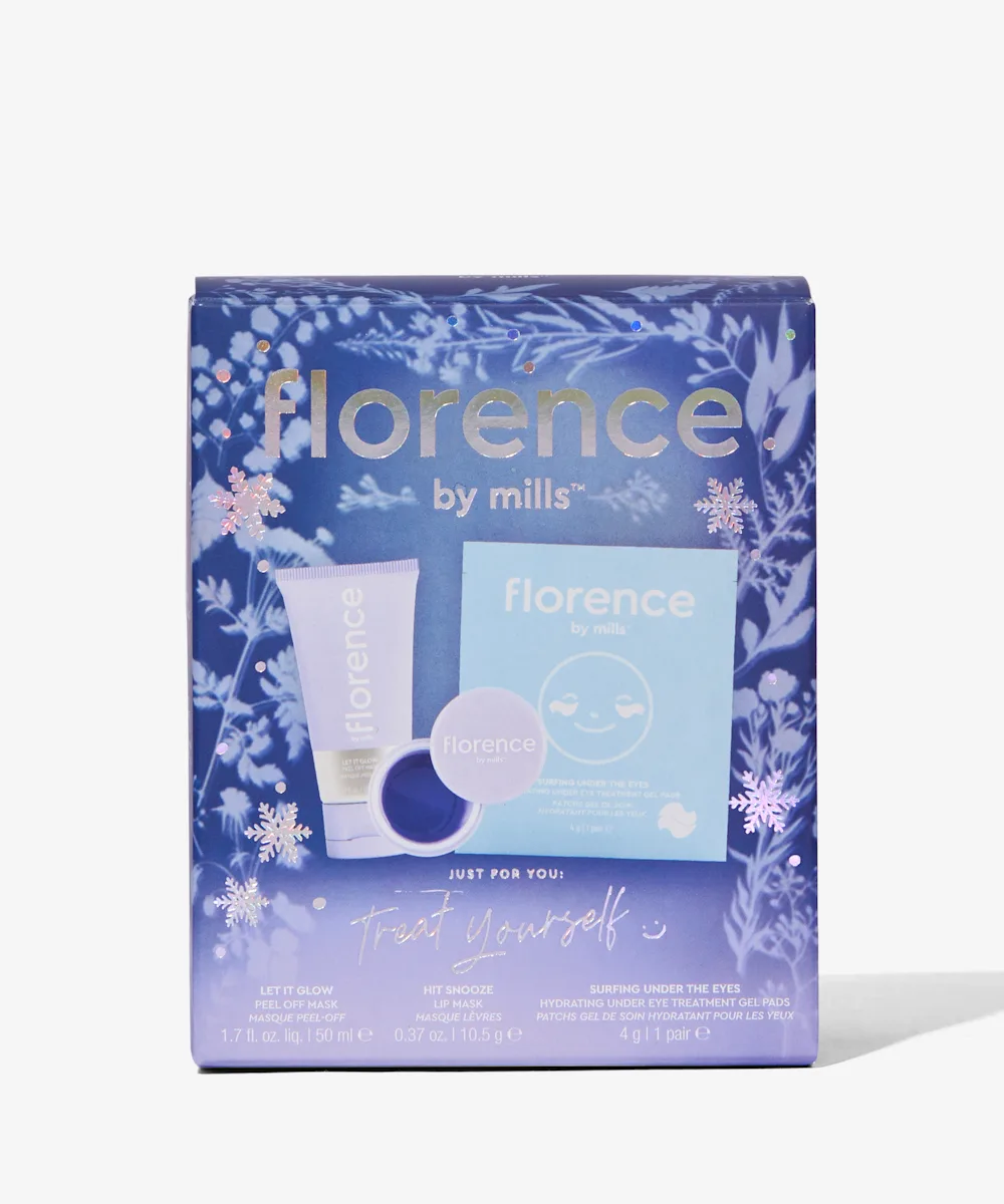 No pamper evening is complete without the florence by mills Just For You: Treat Yourself set. Inside this set you’ll find a pair of hydrating under eye gel pads, a super nourishing jelly lip mask, and a calming, peel-off face mask.