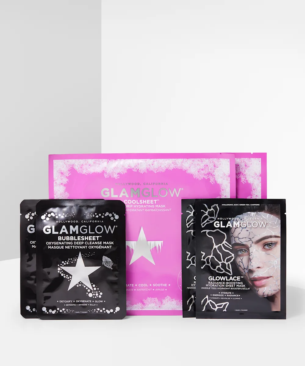 In need of a self-care stash restock? GLAMGLOW’s Sheet Squad masking set is here to make sure your skin has a nourishing mask whenever it’s craving the TLC. Featuring three of GLAMGLOW’s most loved sheet masks, the set has everything your need to clear, hydrate, and create a glowing finish. The BUBBLESHEET™ Oxygenating Deep Cleanse Mask works to invigorate and detoxify the skin, the GLOWLACE™ Radiance-Boosting Hydration Sheet Mask helps to energise dull, tired skin, and the COOLSHEET™ Hydrating Sheet Mask hydrates, soothes, and conditions the skin.