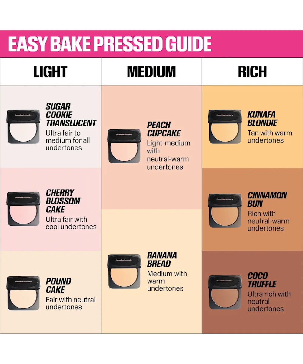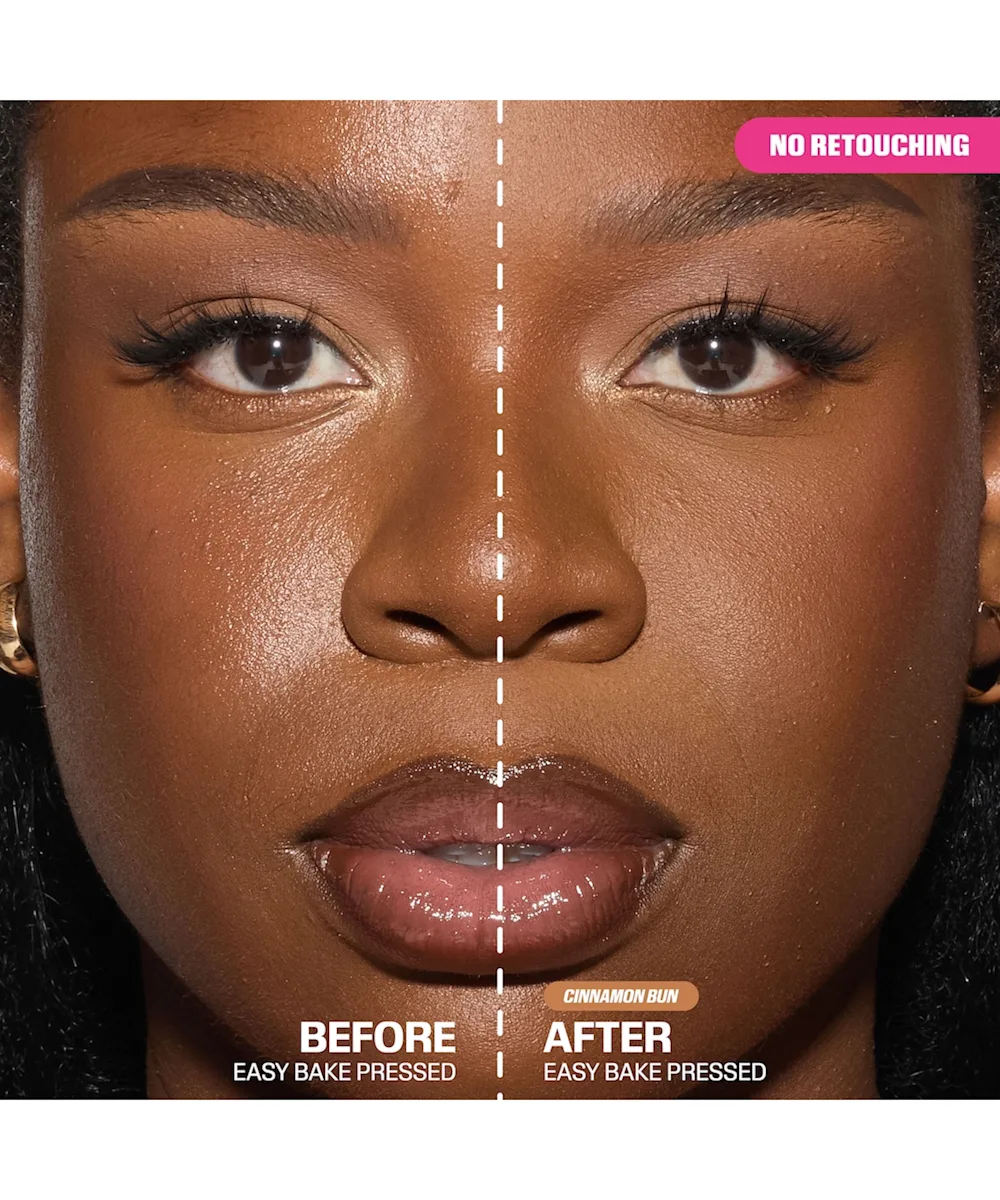 Introducing Huda Beauty's first REAL pressed powder - the Easy Bake Pressed Powder. A non-comedogenic super fine pressed powder with 12hr shine control for a non-caking airbrush matte finish. This super fine, never cakey, long-wearing pressed powder blurs, smooths, and sets for a 12-hour airbrush matte finish.