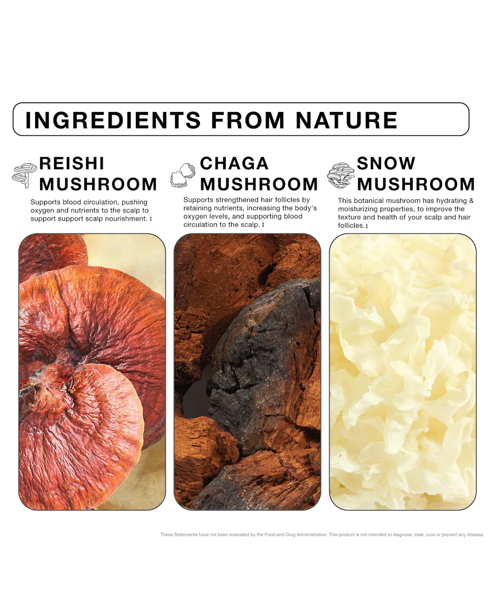 Organic Chaga (Inonotus Obliquus), Organic Reishi (Ganoderma Lucidum, Snow Mushroom (Tremella Fuciformis), Agar, Sodium Citrate Dihydrate, Non-GMO Soluble Corn Fibre, Zinc Aspartate, Citric Acid, Stevia Leaf Extract, Purified Water, Blueberry.