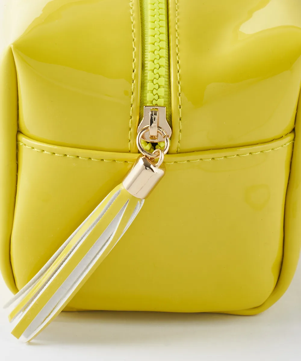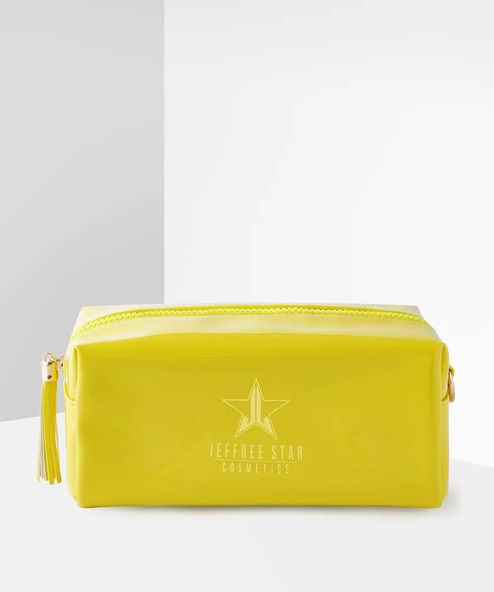 Featuring an acid chartreuse, vinyl design, this bag is definitely going to stand out in your collection. The Chartreuse Accessory Bag is made from faux leather and features the Jeffree Star Cosmetics logo, gold hardware and tassel zip. The perfect companion to house all your makeup faves.