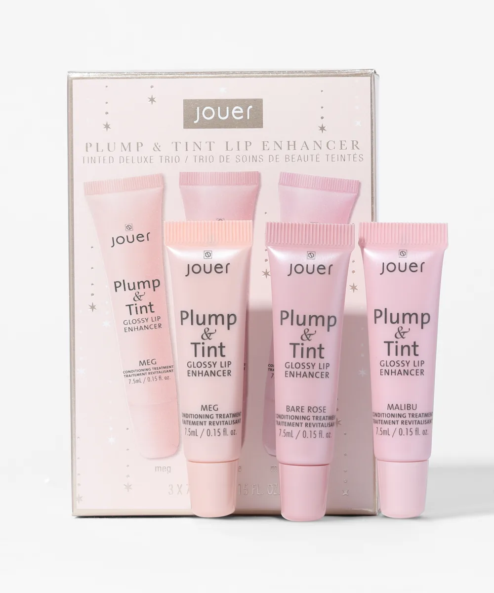 Treat your lips to a little luxury with the Jouer Cosmetics Plump & Tint Lip Enhancer Tinted Deluxe Trio. This trio of deluxe tinted lip enhancing treatments in playful pinks and neutrals contains a blend of Maxi Lip TM, shea butter, jojoba seed oil and vitamin e, that works to decrease the appearance of fine lines and banish dryness, for a full and silky soft finish.