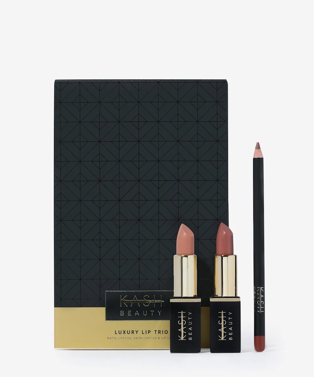 Get lippy this festive szn with the KASH Beauty Luxury Lip Trio Gift Set. Inside this set you’ll find a nude matte lipstick, a pink shimmer lipstick and a rosy nude lipstick to tie your looks together.