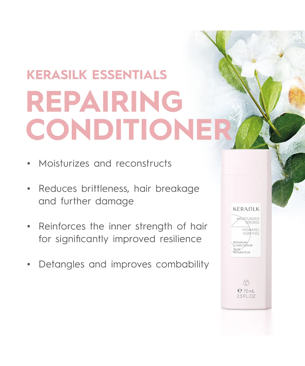 - Repairing Conditioner, 75 ml – A reparative, silicone-free conditioner that helps nourish and detangle the hair, enhance elasticity and resilience, and minimise breakage to improve manageability with a biomimetic silk and hyaloveil-rich formula.