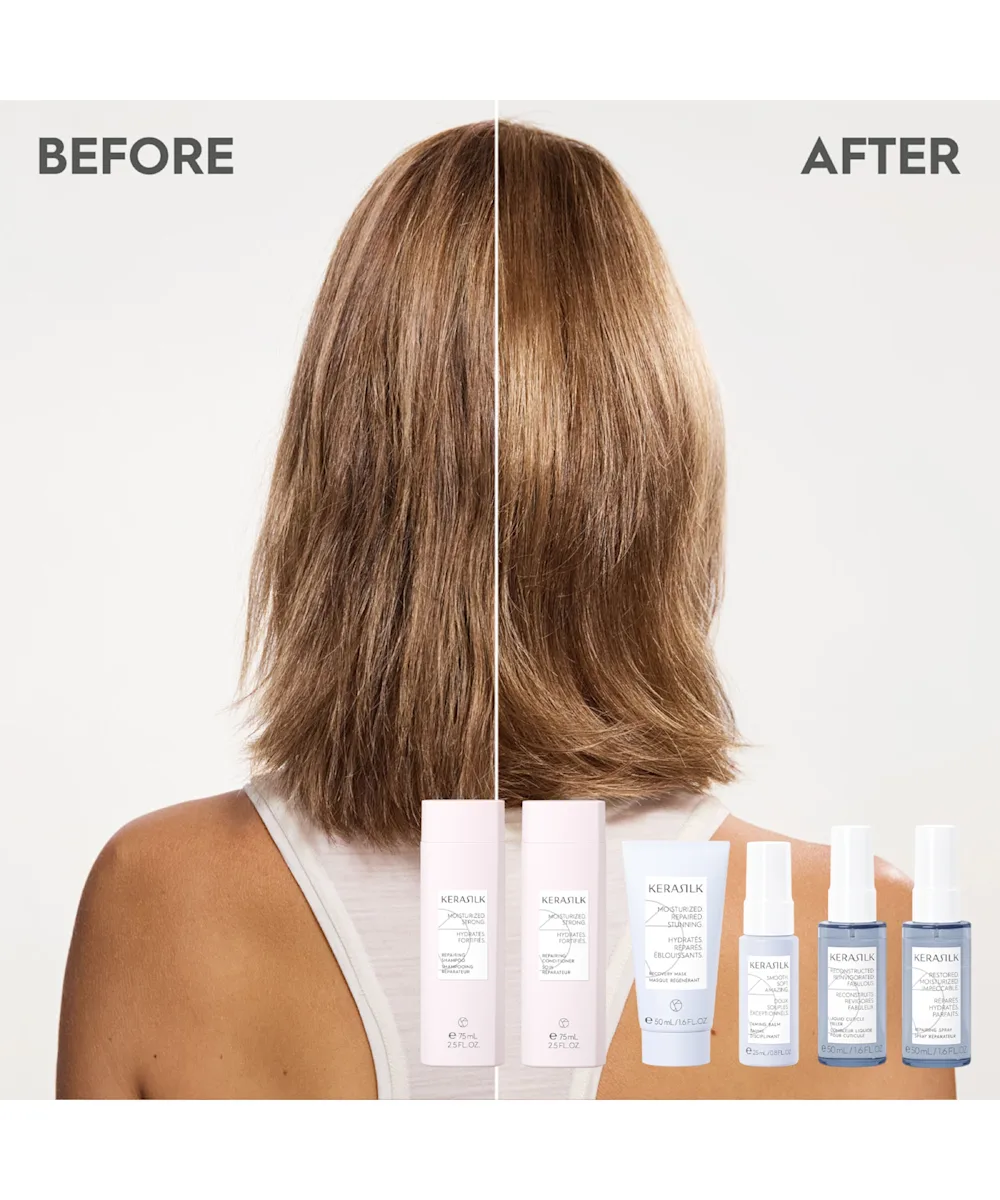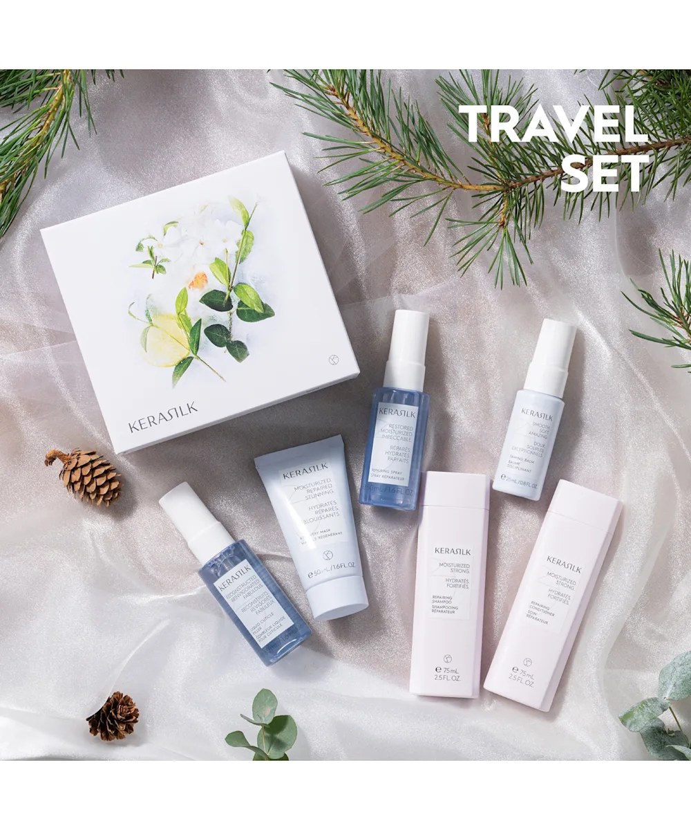 Treat your tresses to the wonders of the KERASILK Travel Set (Online Exclusive). Inside you’ll find six haircare heroes that smooth, soften, and repair hair, including the Repairing Shampoo, a gentle cleansing shampoo, the Repairing Conditioner, a reparative conditioner, the Recovery Mask, a reparative hair mask, and the Taming Balm, a hair balm. Plus, the Liquid Cuticle Filler, a cuticle-refining, heat-activated spray and the Repairing Spray, a reparative spray. Race you to the checkout!