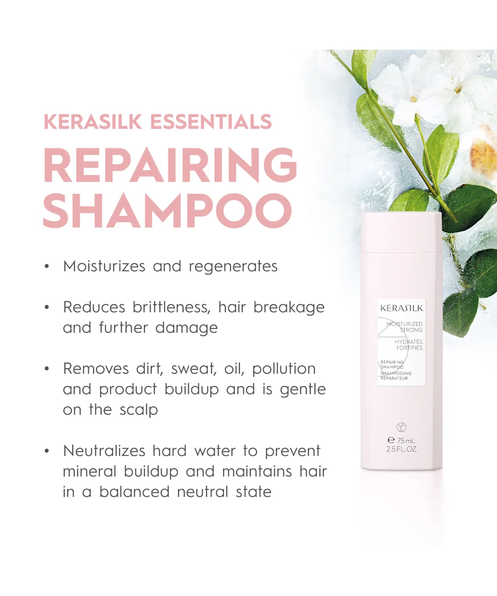 - Repair Shampoo, 75ml - A gentle cleansing, silicone-free shampoo that uses a biomimetic silk and hyaloveil-infused formula to remove product buildup and dirt, nourish, cleanse, and regenerate the hair, and minimise brittleness, breakage, and damage.
