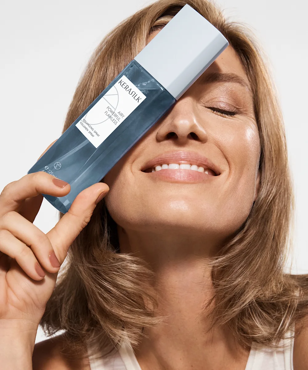 Great hair speaks volumes, so haul the KERASILK Volumizing Spray. Enriched with vitamin and mineral-rich biomimetic silk and blue lotus extract, this featherweight spray boosts volume to transform limp and lifeless hair into voluminous and touchable hair that has a natural-free-flowing feel. Made with limp and flat hair in mind, this powerful and airy spray conditions the hair with weightless hydration to make detangling much easier. Offering heat protection with a light hold, plus anti-static properties, this powerful volumising spray works to enhance volume and body for smooth and soft hair that has a glass-like shine.