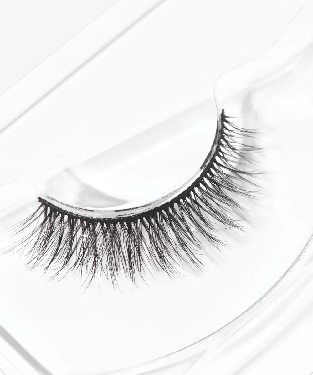 - Trim to size and apply to the upper lash line using adhesive.