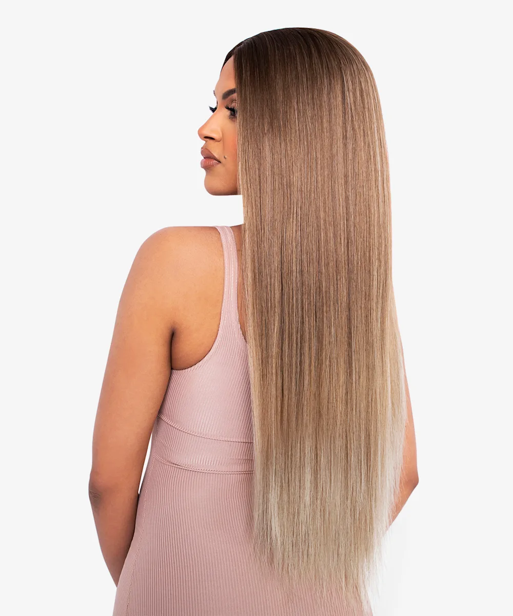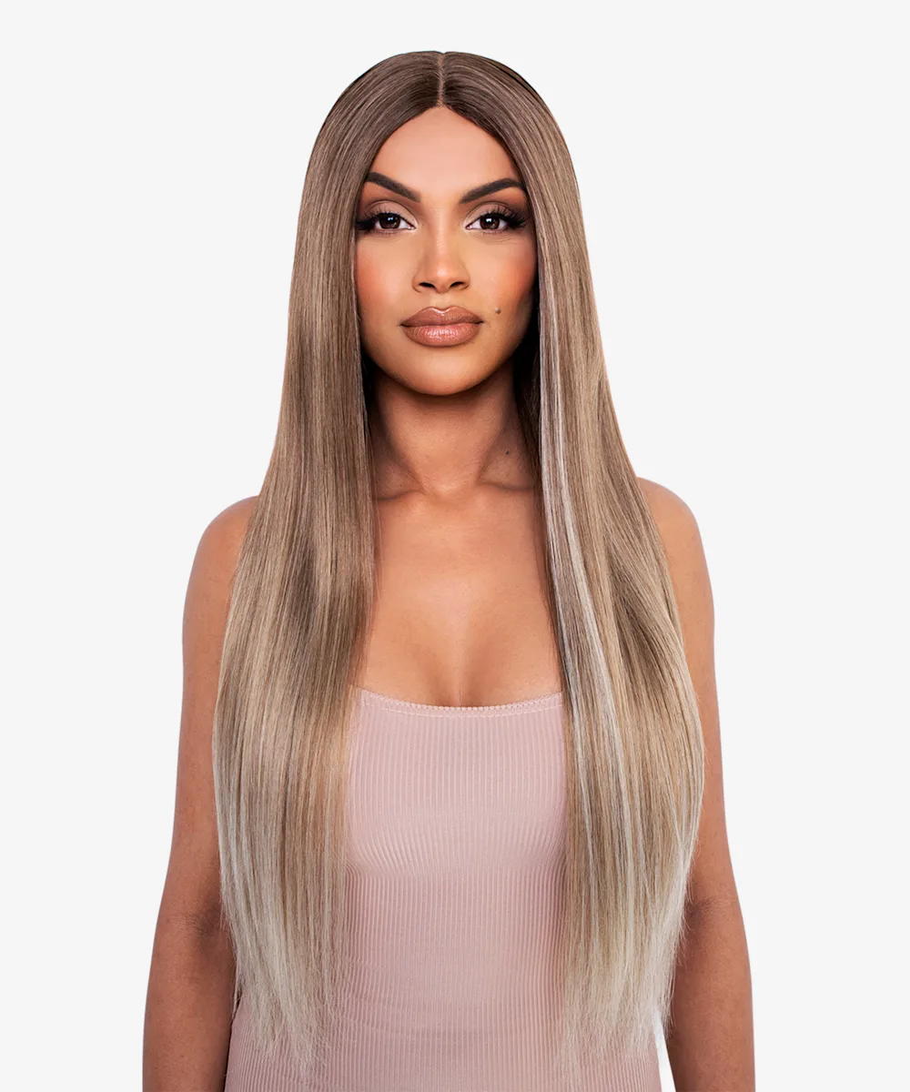 A blonde balayage 33” lace front wig.