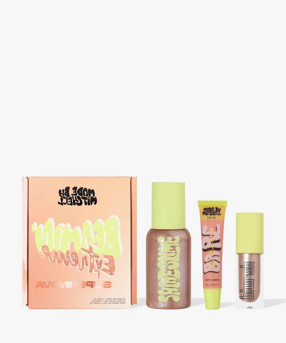 Swipe on mega shine with the Made By Mitchell Beamin’ Extreme Shine Slime Bundles. It brings together Shine Slime Extreme, Blursh Lights, and Bare Sparkles for radiance that can be seen from the stars. Each formula is designed to deliver high-impact glow, dewy skin perfection, and a sparkling lip finish. With six curated sets, you’ll have everything you need to create a look that beams from every angle.