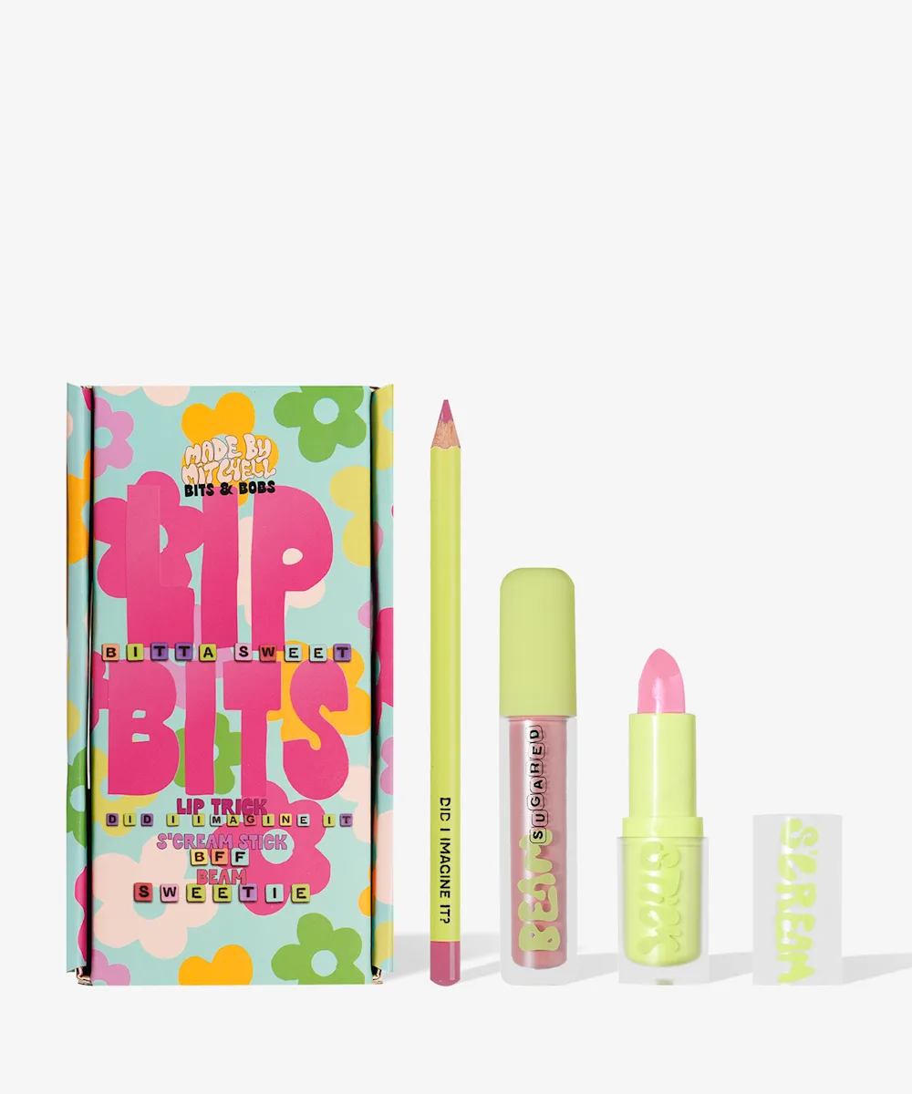 Say hello to sculpted, glossy, and Y2K-inspired lips with the Made By Mitchell Bits & Bobs Lip Kit. Inside you’ll find everything you need to shape, colour, and shine with minimal effort. It features the Lip Trick Liner, a smooth-glide pencil that sculpts and defines, a Lipstick that delivers rich, creamy pigment, and the Beam Sugared Gloss, a juicy-tint gloss that leaves a buildable wash of colour and moisture. Perfect for mixing, matching, or gifting, your dream lip combo starts here.