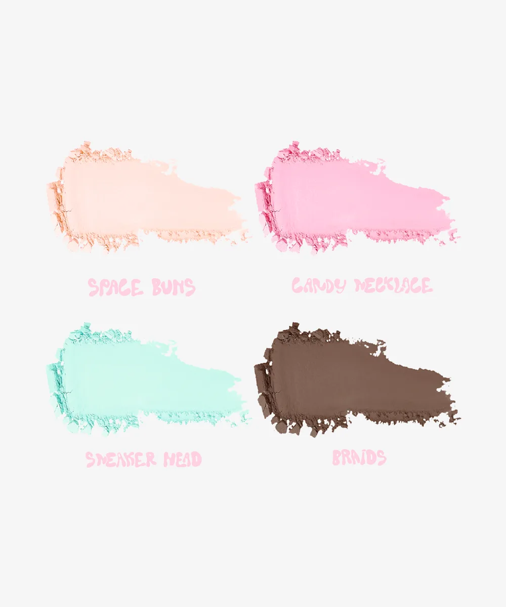 Quad Pod Matte Palette in Space Buns, Candy Necklace, Sneaker Head, and Braids: A four-pan palette packed with soft, blendable matte shades that deliver high-impact pigment for seamless, statement looks.