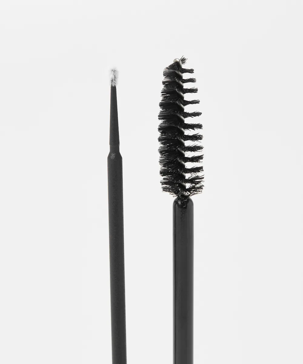- Set the brows in place by applying the brow fixer, using the second micro wand, coating hairs from root to tip.