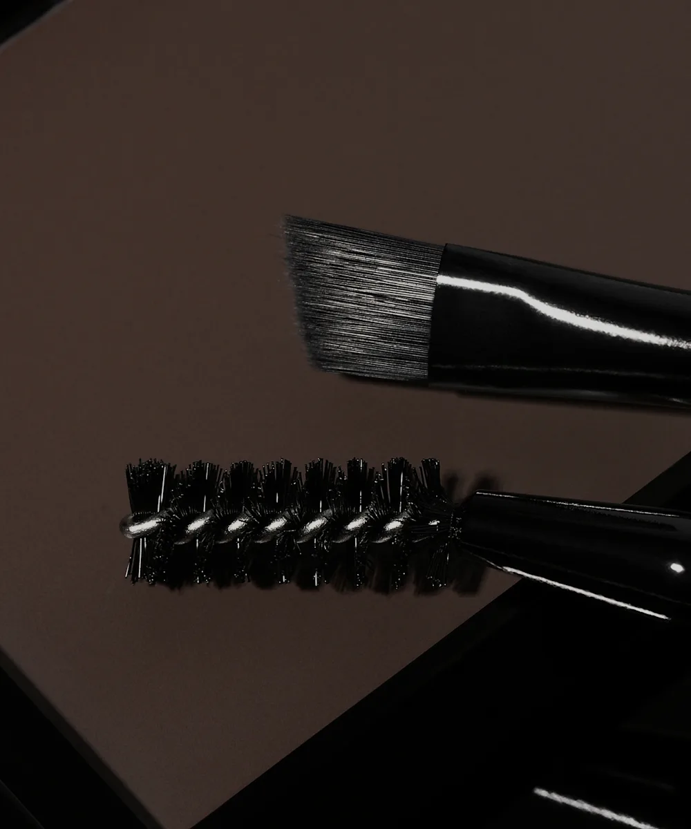 - First coat the spoolie with the pigment and to apply to your brow hairs in an upward motion to create a full brow effect, then take brush to create definition and shape the brows.