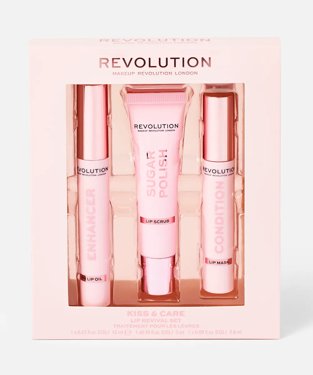Kiss goodbye to chapped, stressed lips with Revolution’s Kiss & Care Lip Set. Featuring three formulas to revive the delicate skin on the lips, the set works to polish away dry skin, buff away dead skin, and leave the lips feeling hydrated. Formulated with jojoba oil, shea butter, and vitamin E, the set keeps the lips looking and feeling soft, smooth, and kissable.