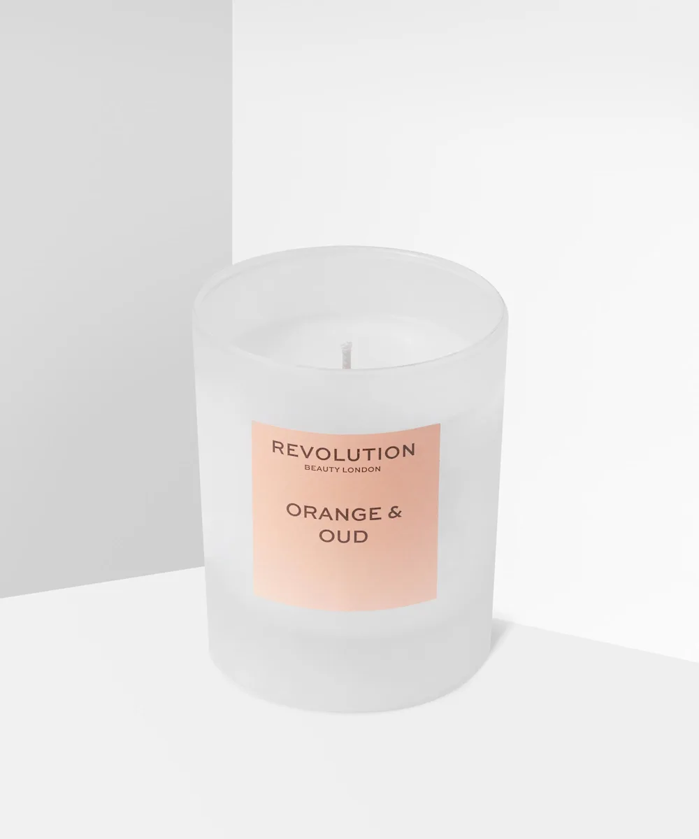 Your pamper routine just got a serious upgrade thanks to the Revolution Orange & Oud Scented Candle. This candle is perfect for creating a luxurious atmosphere anywhere in your home. This luxe candle is packaged in a weighted, frosted glass jar with 32 hours burning time for a long-lasting warm experience. The ideal birthday gift, stocking filler, or treat for yourself.