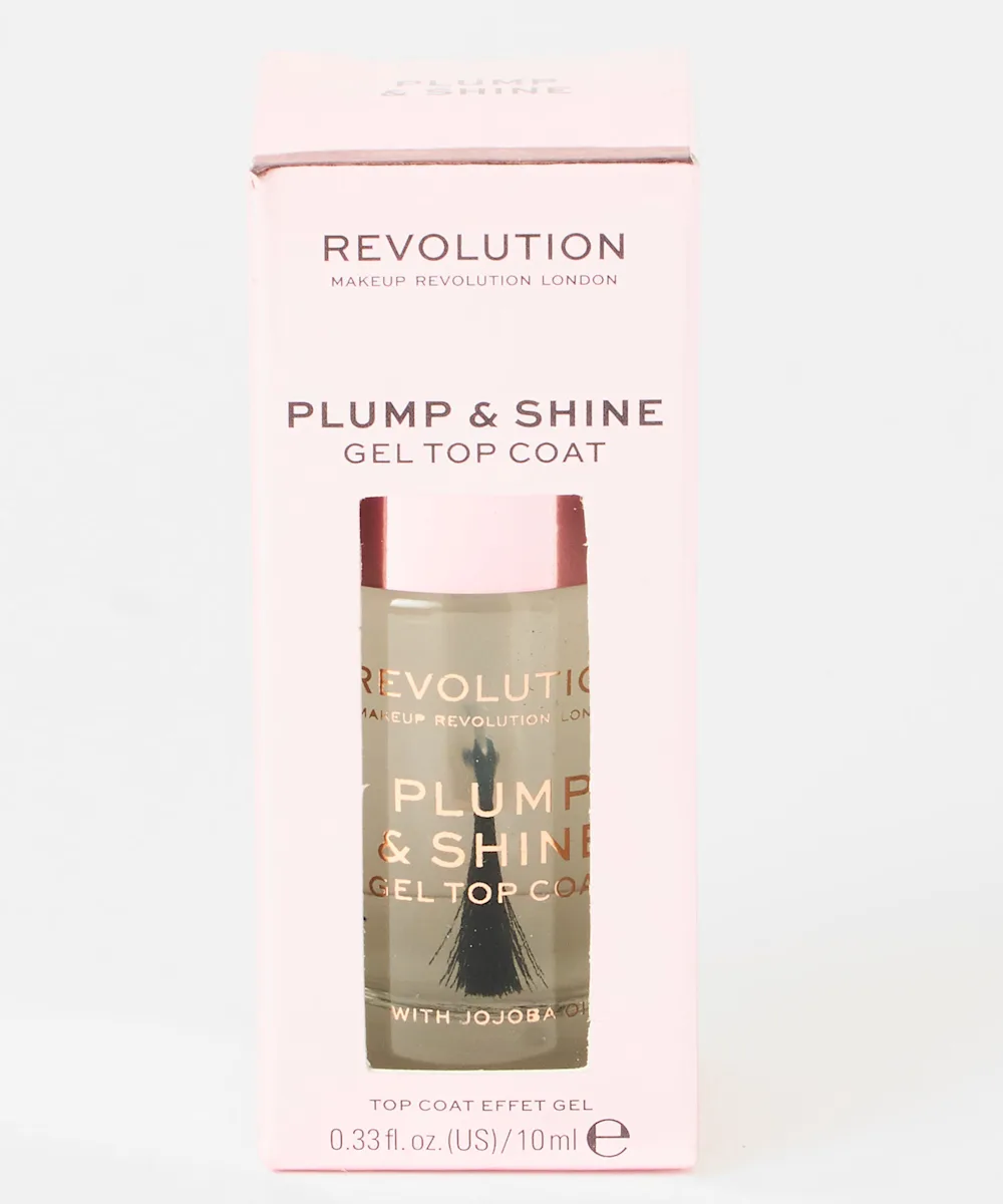 Lock down your manicure with the Plump & Shine Gel Top Coat from Revolution. This gel top coat dries to help keep your nails in place for longer, as well as giving them the ultimate shine. This gel coat lasts longer than standard top coat, meaning less time spent doing touch ups.