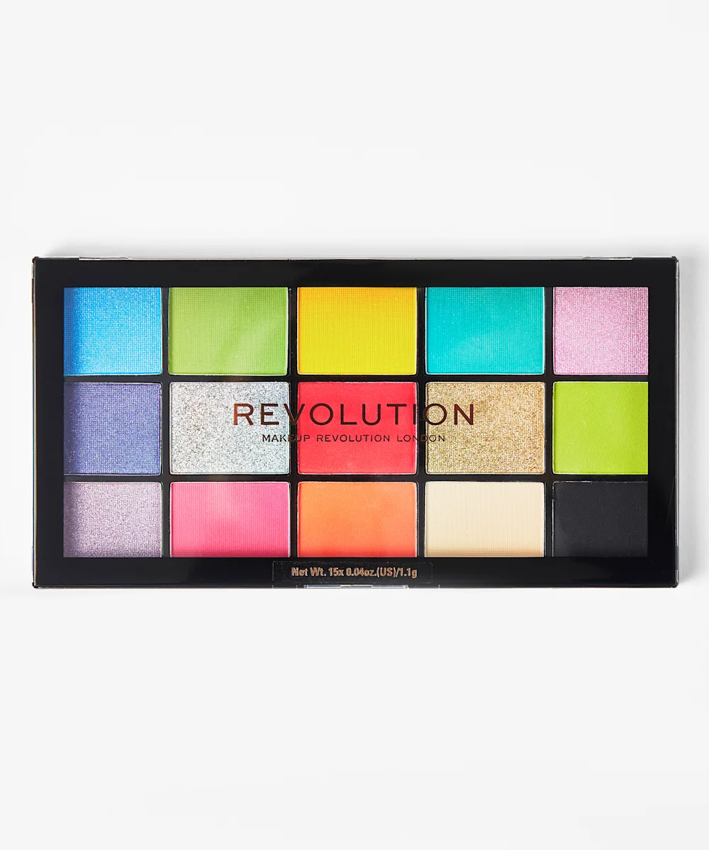 The perfect bright and bold palette for bringing euphoria to your looks. Revolution’s 15-shade Reloaded Palette Euphoria features an array of striking shades to be worn alone for a subtle pop of colour, or together for a rainbow inspired vibe. With a selection of highly pigmented, long-lasting bright shades and primary colours in glitter and matte finishes, this palette is here to brighten your looks and your mood.