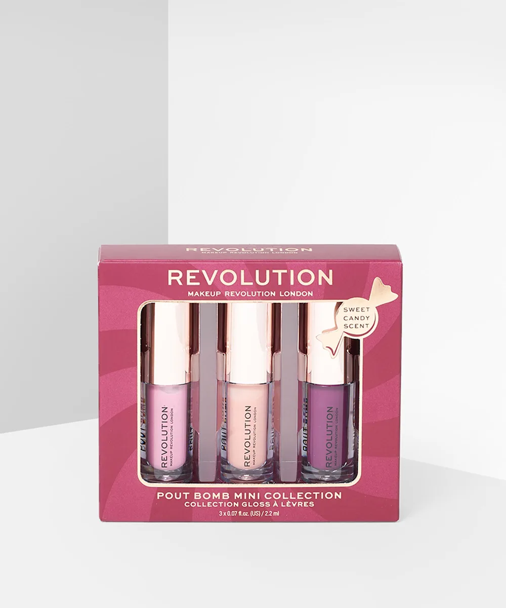 Upgrade your gloss game with the Makeup Revolution Sweet Candy Mini Pout Bomb set. Inside you will find three stunning mini lip glosses in a super shiny, non-sticky finish, that make the perfect gift for a loved one or a special treat for yourself. With a deep wine, soft pink nude and soft brown nude shade to mix n match with, what's not to love? Add it to your next haul ASAP.