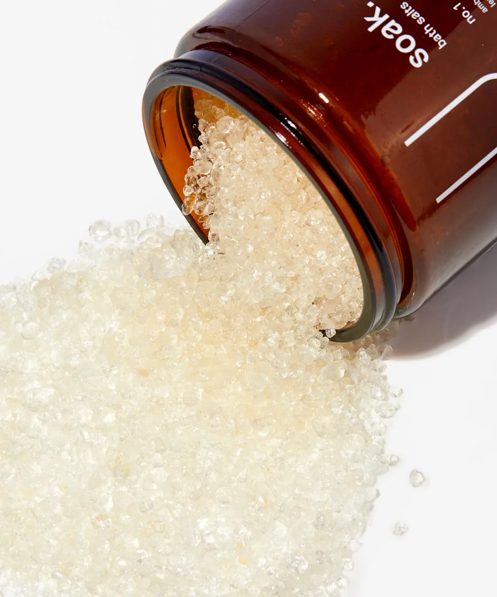 No.1 Soak Ingredients Sodium Chloride (Dead Sea Salt), Parfum (Fragrance), Benzyl Benzoate, Coumarin, Benzyl Alcohol.