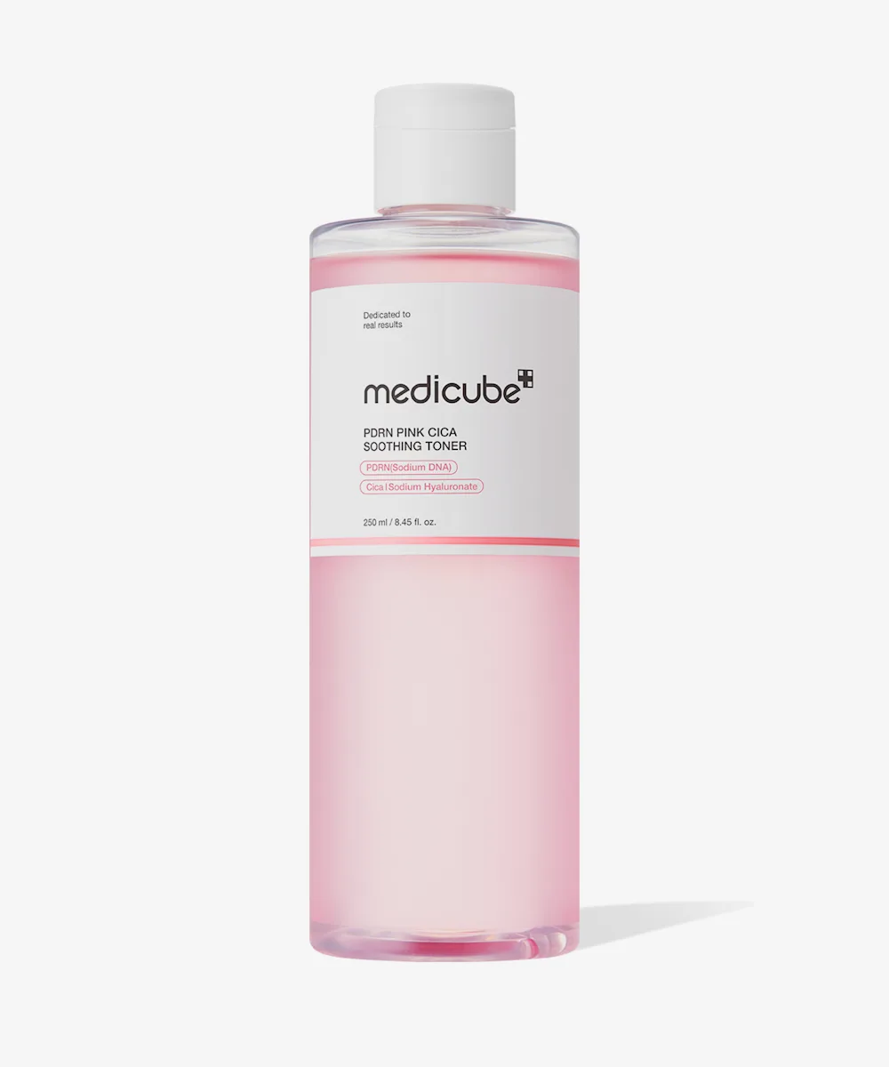 Experience radiant skin with the Medicube PDRN Pink Cica Soothing Toner. It's infused with Rose PDRN to enhance texture, boost clarity, and promote a natural glow, supporting overall skin vitality and helping to even skin tone and improve radiance. This toner strengthens the skin barrier, prevents moisture loss, and gently exfoliates to reveal smoother, more hydrated skin. Its lightweight, non-sticky texture absorbs easily and layers well with other skincare products. Naturally derived and gentle, it's suitable for all skin types, including sensitive and oily skin. Revitalize dull, tired skin and achieve a fresh, healthy look with this glow-enhancing, multi-benefit toner.