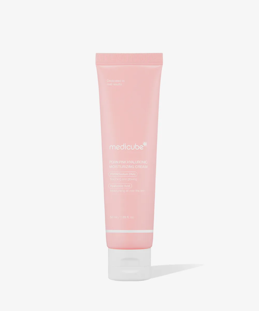 Start your skin renewal routine with the Medicube PDRN Pink Hyaluronic Moisturizing Cream. This lightweight yet deeply nourishing formula replenishes moisture, evens skin tone, and strengthens the skin barrier. Powered by salmon-derived PDRN and 2% niacinamide, it works to fade blemishes, reduce discolouration, and enhance radiance. A complex of ten types of hyaluronic acid provides multi-layer hydration, while ceramides, antioxidant peptides, and soothing botanicals lock in moisture and shield against dryness. With its silky, fast-absorbing texture, it leaves skin soft, dewy, and refreshed.
