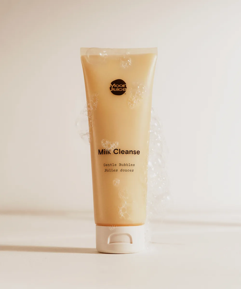 Great skin days start with the Moon Juice Milk Cleanse. This 2-in-1 cleanser and a treatment is gentle, sulfate-free, pH balanced and enriched with a hydrating blend of adaptogenic reishi, silver ear mushroom, and tocos (vitamin E) that remain on your skin to help support hydration and improve barrier function.