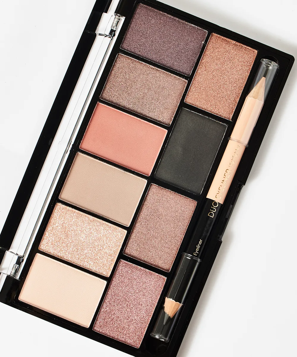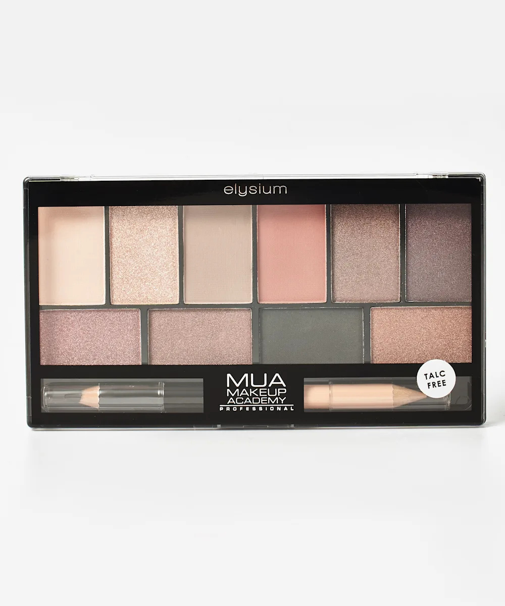 Create endless eye looks with the MUA Makeup Academy Elysium Palette. This ten-colour palette features all the neutral-toned matte and shimmer shadows that you need. The butter-soft formula glides onto the skin for a flawless finish that blends seamlessly. The dual-ended black and nude eyeliner pencil allows you to complete your looks.