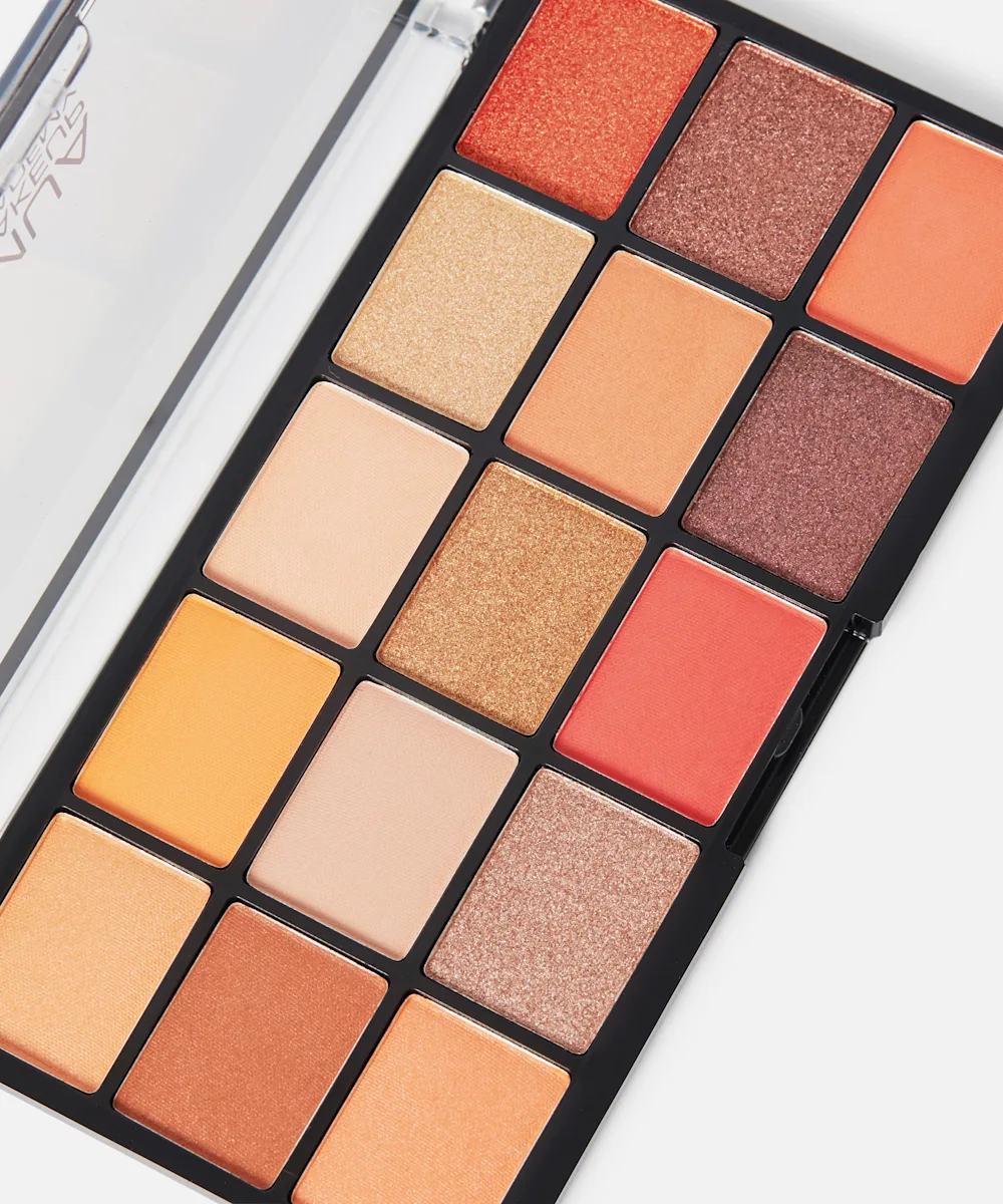 Create endless eye looks with the MUA Makeup Academy Eyeshadow Palette Empire Butterfly. This fifteen-shade eyeshadow palette has all the fiery-toned shades you need. The highly pigmented formula buffs and blends onto the lids for matte and shimmer finishes that last all day long. Blend and layer the shades to create your favourite looks.