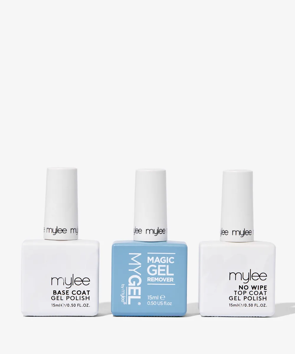 Meet The Legends Trio from Mylee, three essentials that help to serve and protect your gel mani. Inside this set you’ll find Mylee’s Magic Gel Remover that removes gel in just six minutes, the No Wipe Top Coat to top off your looks and the No Wipe Base Coat to prep them. Providing protection and shine for up to three weeks, curing in as little as 15 seconds with a UV or LED Lamp (sold separately), and making the removal process quick and dreamy, this trio belongs in your at-home nail kit.