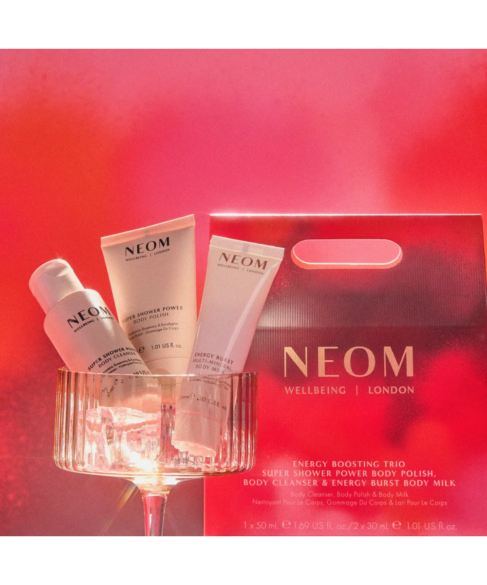 Start the day right with this NEOM Energy Boosting Trio. With cleanser, body milk and body polish for the most invigorating routine, these essentials are made with 100% natural essential oils so you’ll immediately feel re-energised by the scents of spearmint, rosemary and eucalyptus. Just jump in the shower, cleanse, exfoliate and moisturise, and enjoy the perfect wake up call.