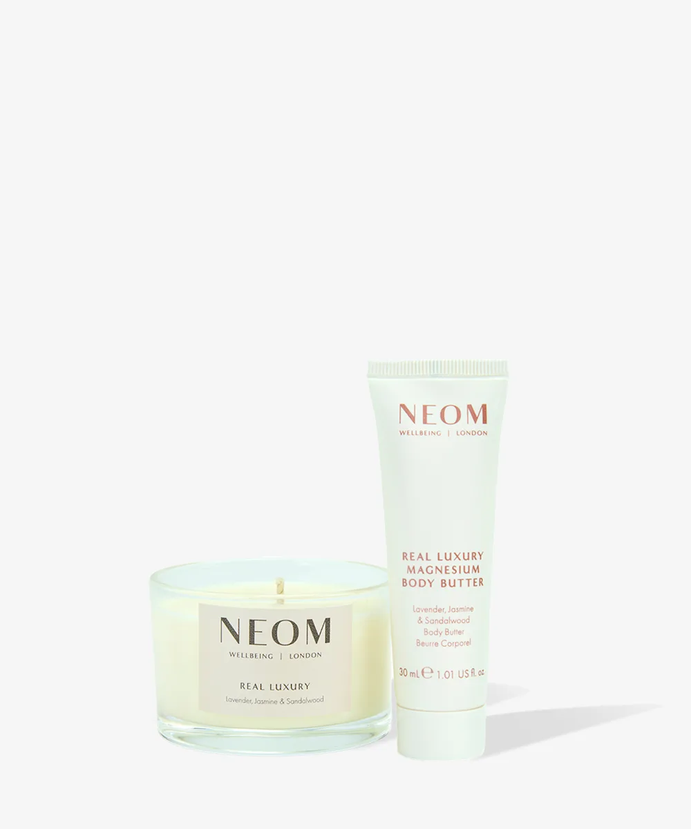 - Real Luxury Scented Candle (75g): A relaxing candle infused with a blend of 24 pure essential oils including, lavender, brazilian wood and jasmine.