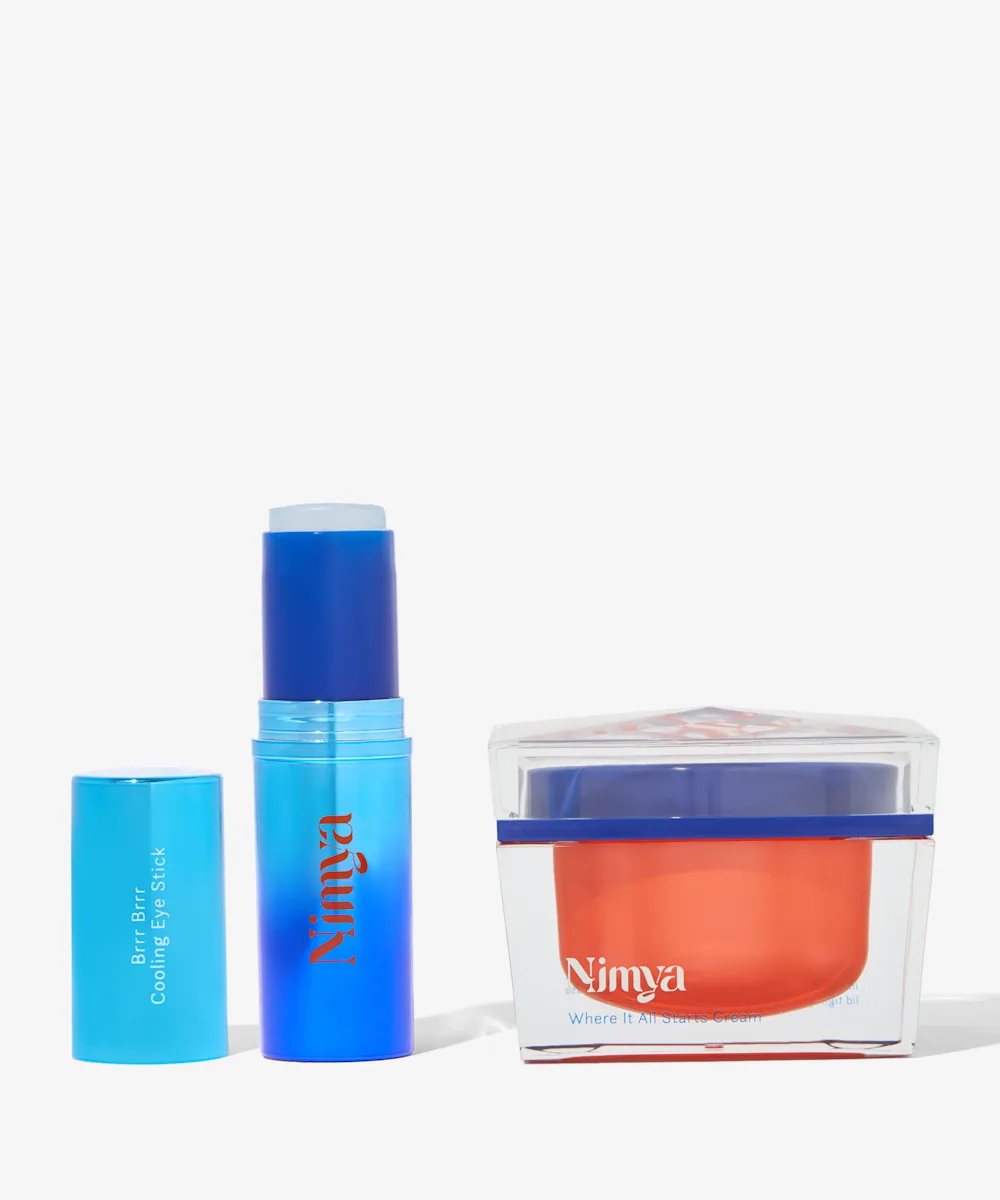 - Nimya by NikkiTutorials Brrr Brrr Cooling Eye Stick – A depuffing eye stick that soothes, depuffs, and balances the eye area with a caffeine, green tea extract and olive squalane-infused formula.