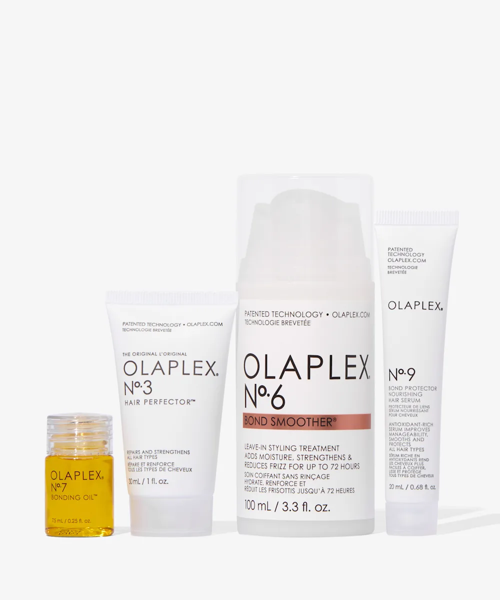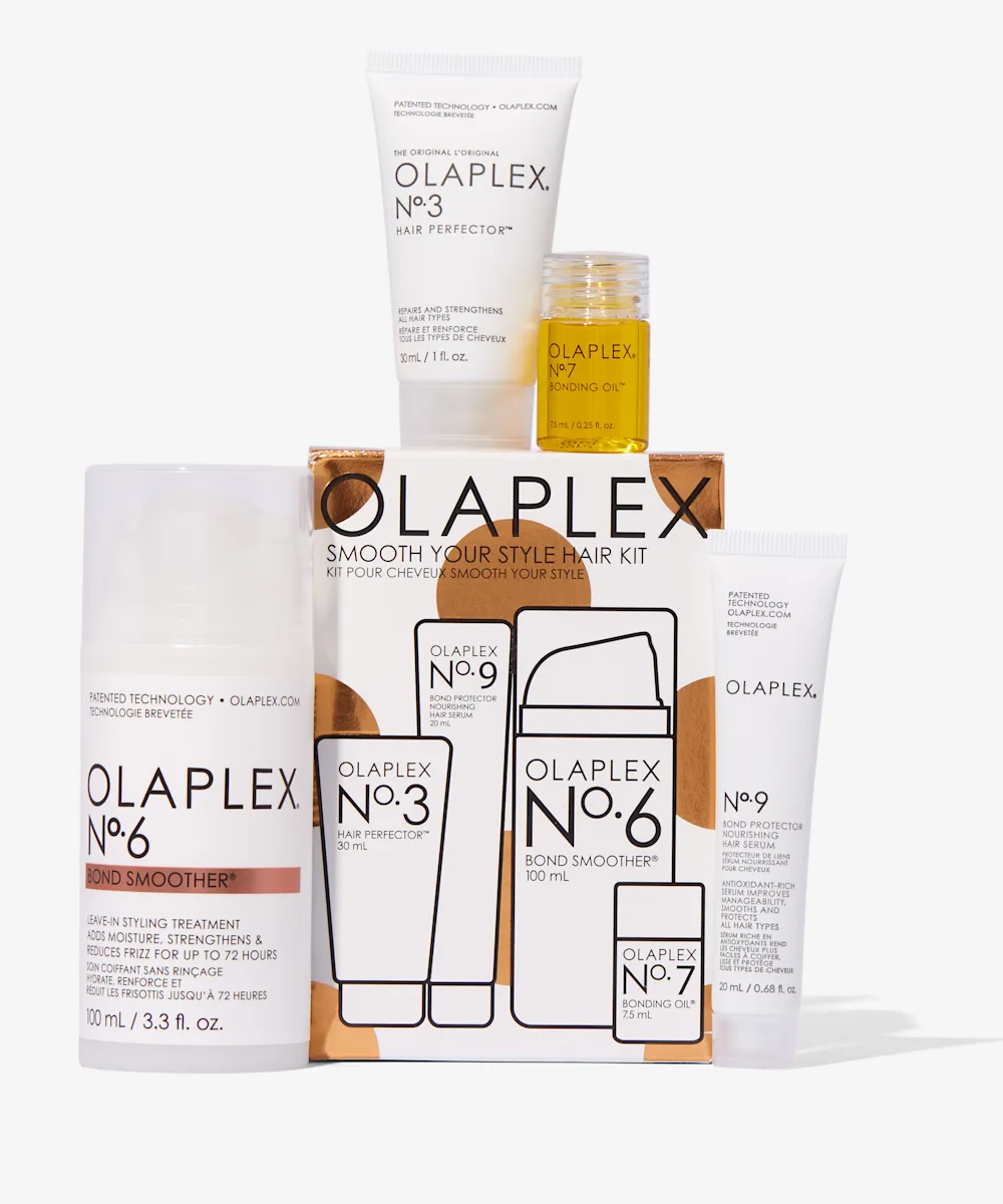 Revive and restore your hair to its peak strength with the OLAPLEX Smooth Your Style Hair Kit. In this set you’ll find four iconic haircare essentials that work to treat and repair damaged hair for noticeably softer and smoother hair. This includes a bond-building treatment that helps reverse bleach and chemical-induced damage, a reparative hair serum that protects the hair from daily damage, a leave-in treatment, and finally a hair oil that repairs, de-frizzes, and hydrates the hair. Healthy hair is so in.