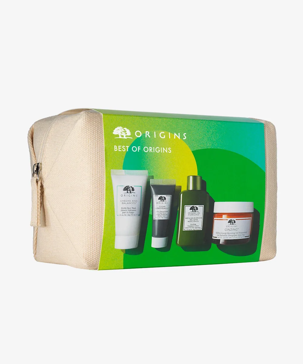 Experience the best of the best with the Best of Origins. Including four best sellers that form a complete skin care regime plus a handy storage bag, this set is the stuff of dreams. Use the Frothy Face Wash to rinse away dirt and impurities, deeply detox your complexion with the Active Charcoal Mask, rehydrate with the Treatment lotion and then infuse your skin with radiance and 72-hour hydration with the Oil-Free Moisturiser. Your skincare routine just got an upgrade.