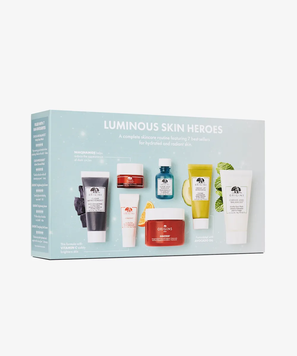 Reap radiant results when you haul Origins’ Luminous Skin Heroes (Bestseller Set). In this set you’ll find seven skincare essentials that help you achieve a brighter and healthier-looking complexion including a gentle cleanser, a multi-action serum, a daily moisturiser, an advanced eye cream, a breakout treatment, a moisturising sleep mask, and a hydrating face mask. Haul it and love it!
