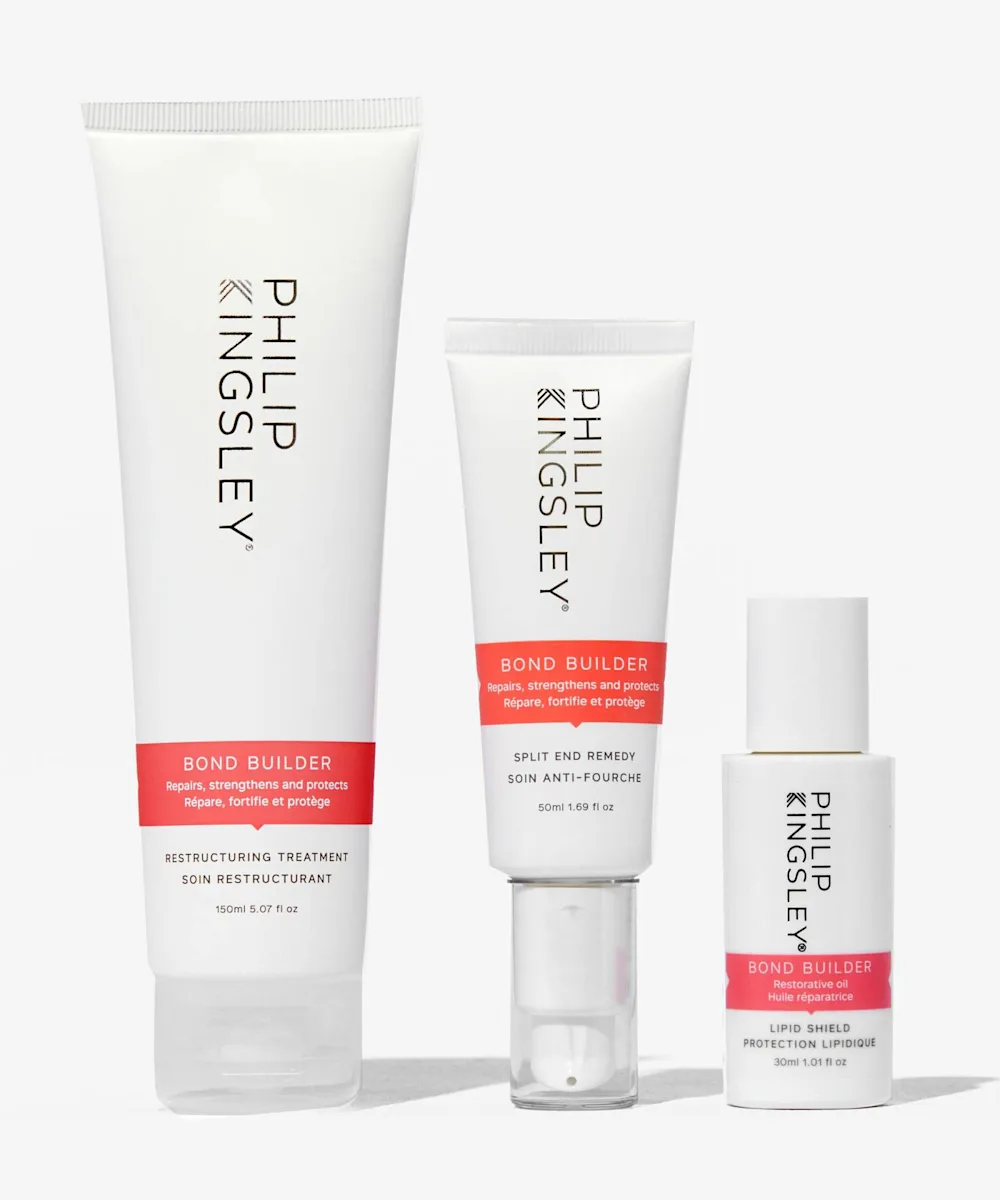 Say goodbye to split ends with the Philip Kingsley Build Your Bonds Regime SOS Care Kit for Damaged Hair. This three-piece bond building haircare bundle instantly restores hair’s natural shine, repairs damage and split ends, and protects from heat to give you stronger than ever hair. A bond you can’t break!