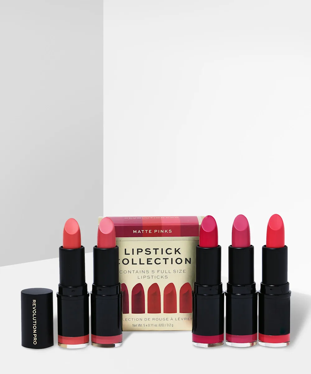 Your lipstick collection needs a pink hue, or five, and the Revolution Pro Lipstick Collection in Matte Pinks is here to satisfy your needs. With each five lipsticks sporting an ultra-creamy, intensely pigmented formula, these matte lipsticks have a comfortable wearing and smudge proof finish that lasts all day long.