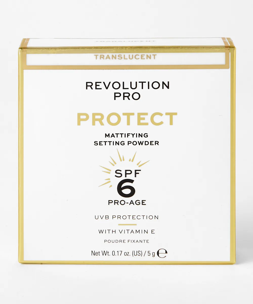 Makeup meets SPF with the Revolution Pro Protect Mattifying Translucent Pressed Powder SPF 6. Set and perfect your base with this lightweight finely milled powder that helps to control shine while shielding the skin from the sun. With a no flashback and translucent finish, formulated with vitamin E, this soft powder is the perfect finishing touch for any skin tone.