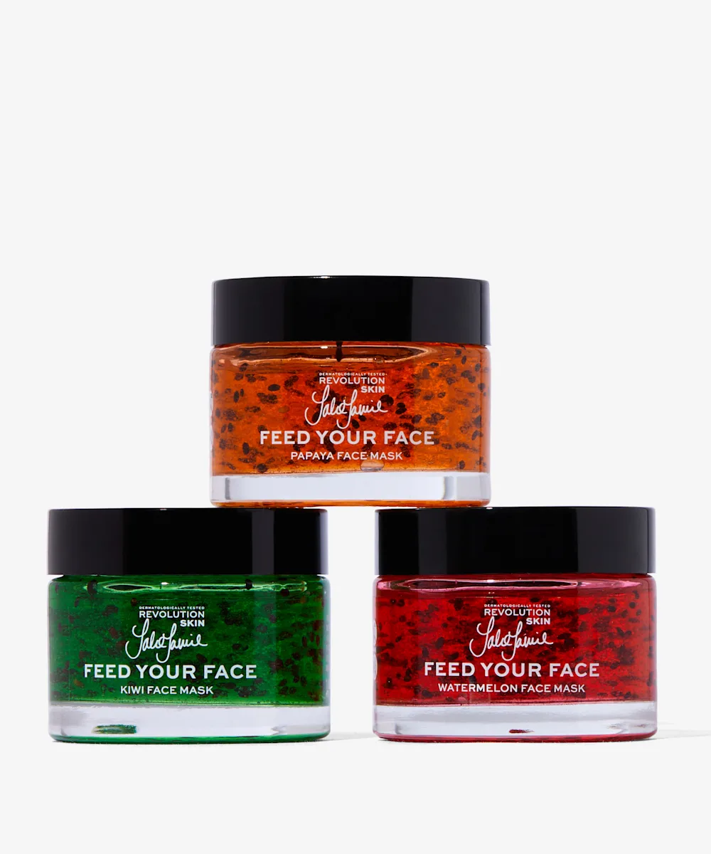 Pamper yourself with the Revolution Skincare Jake Jamie Fruity Mask Trio, a set of three tropical-scented masks. Containing the iconic Watermelon Mask, plus two new delicious scents of kiwi and papaya, these fruit extracts will leave your skin glowing and feeling fresh.