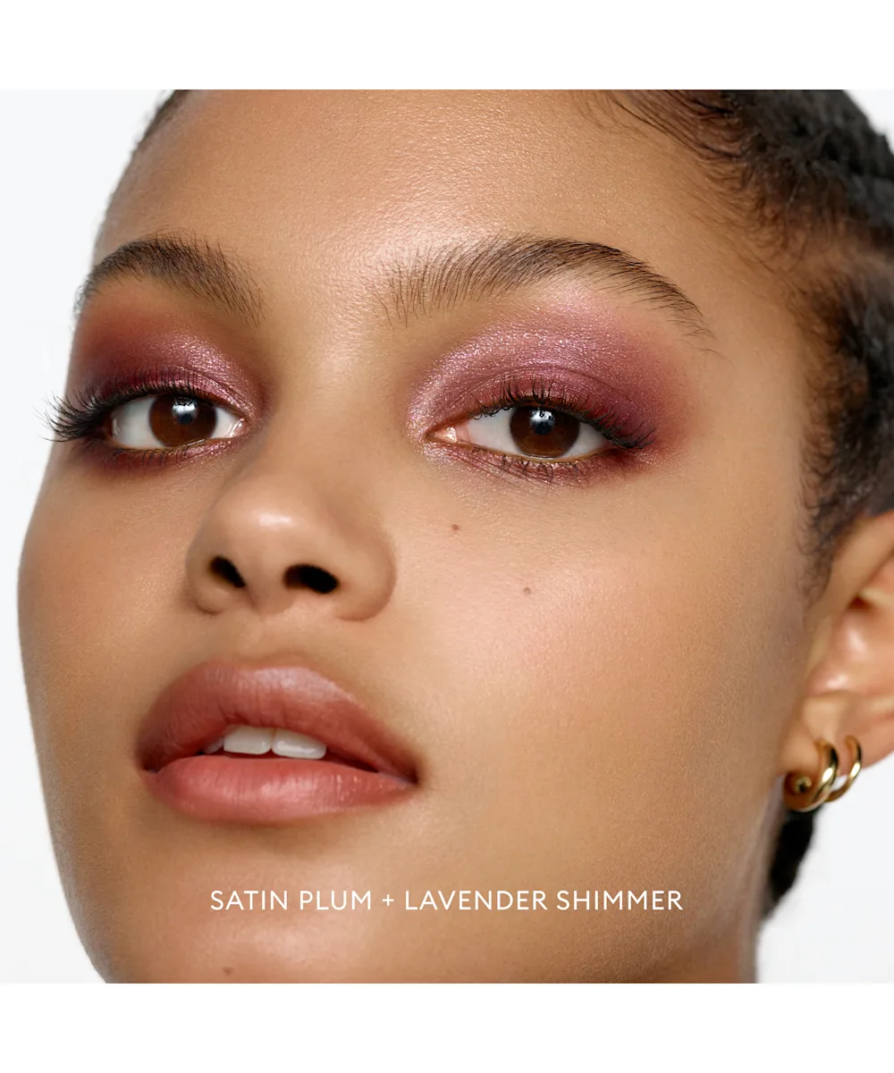 - Sweep satin shadow over lid and then press shimmer on top for a multi-dimensional look.
