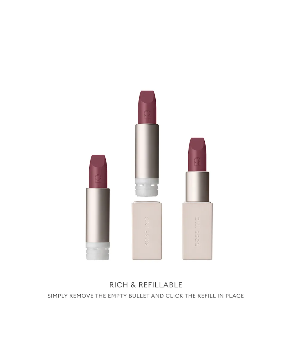 Say hello to silky-smooth, radiant lips with the Satin Lip Color Rich Refillable Lipstick Refill from Rose Inc. This weightless, long-lasting formula is enriched with smoothing botanicals, oil-dispersed sodium hyaluronate to visibly plump, and vitamin E to leave lips soft, supple, and nourished while delivering rich, buildable colour.